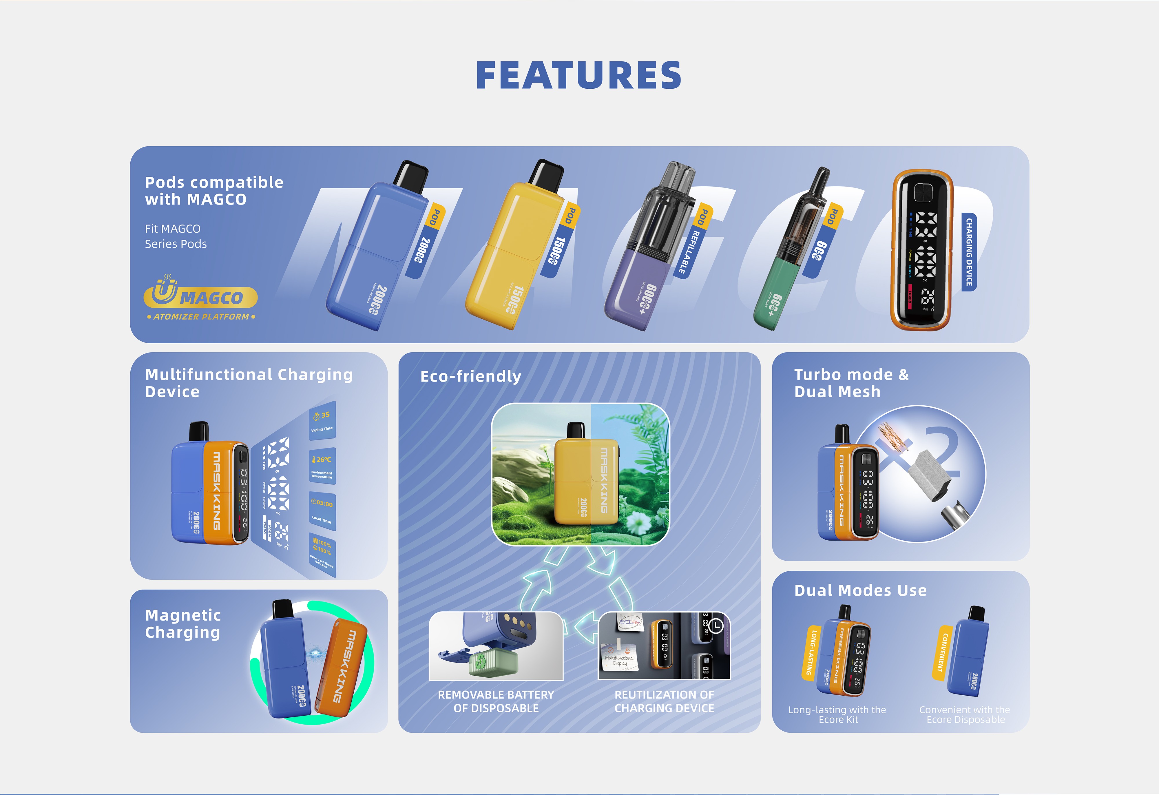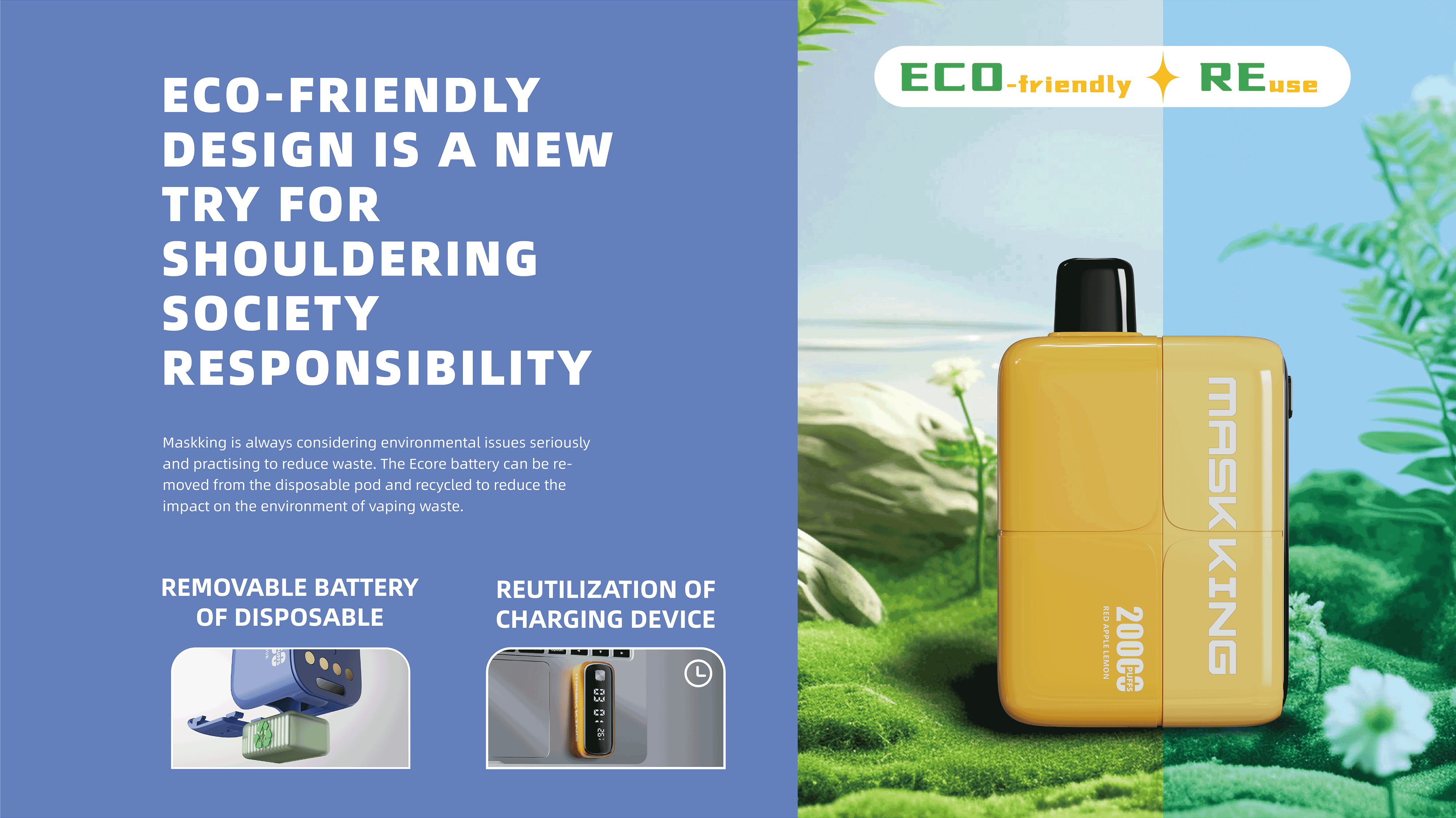 - Die Ecore-Batterie kann aus der DPS-Kapsel entfernt und recycelt werden, um die Umweltbelastung durch E-Zigaretten-Abfälle zu verringern.