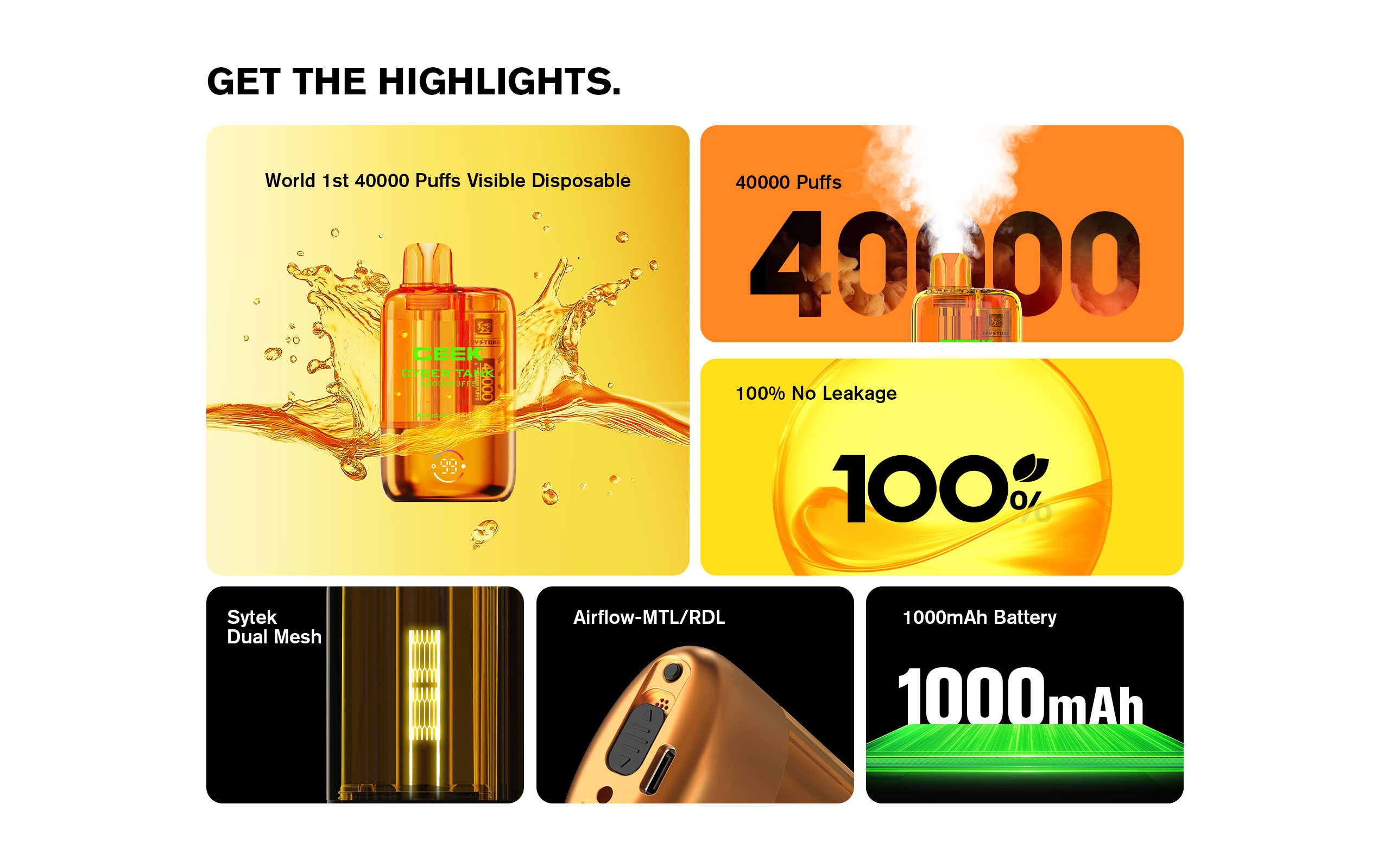 • Erleben Sie mit dem GEEK Cyber Visible Tank 40000 Puffs Einweg-Vape die neueste Innovation. Mit einem 1000-mAh-Akku und Schnellladetechnologie bietet dieser weltweit erste Einweg-Vaporizer herausragende Leistung und bis zu 40.000 sichtbare Züge. Dank seiner Sytek Dual Mesh Coils erzeugt er ausreichend Dampf mit starkem Aroma. Seine durchdachte Konstruktion und das 100 % auslaufsichere Design versprechen ein sanftes Dampferlebnis. Dieses Gerät ist Ihr idealer Dampfpartner und eignet sich sowohl für MTL- als auch RDL-Luftstrommodi.