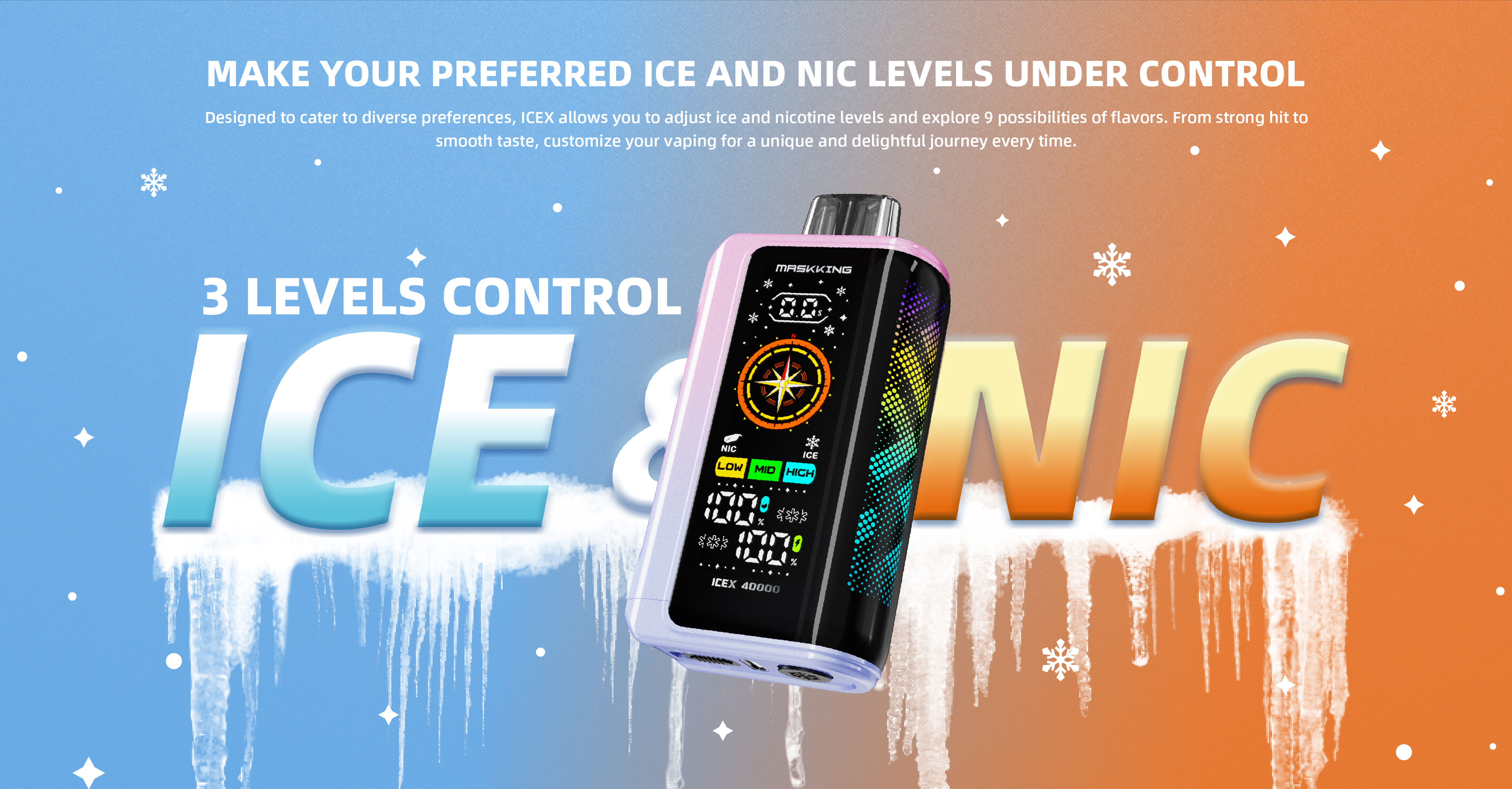 - Icex 40000 wurde entwickelt, um unterschiedlichen Vorlieben gerecht zu werden, und ermöglicht 3 Stufen der Eis- und NCT-Stärkekontrolle.
