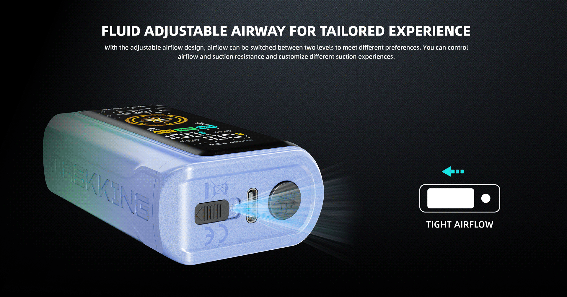 - Der Luftstrom des Icex 40000 kann zwischen zwei Stufen umgeschaltet werden, um unterschiedlichen Vorlieben gerecht zu werden.